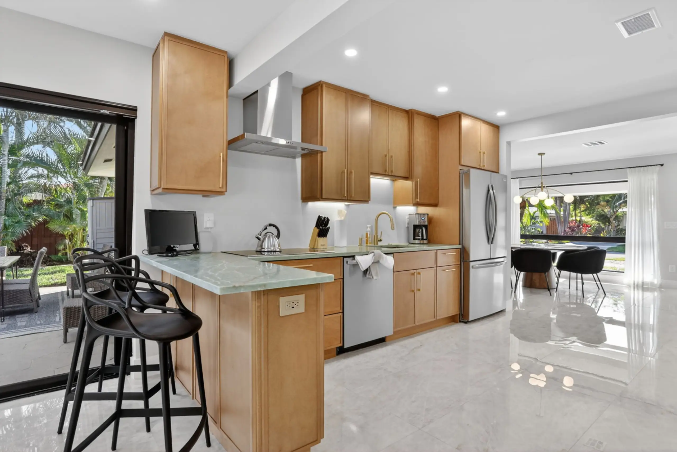 Welcome to your modern Pompano Beach Home — a newly renovated 2 bedrooms , 2 bathrooms with a heated private pool, stylish interiors, and space for up to 6 guests. Just 10 minutes by car to the sandy Atlantic shoreline, this home is perfectly located for sun, surf, and relaxation.